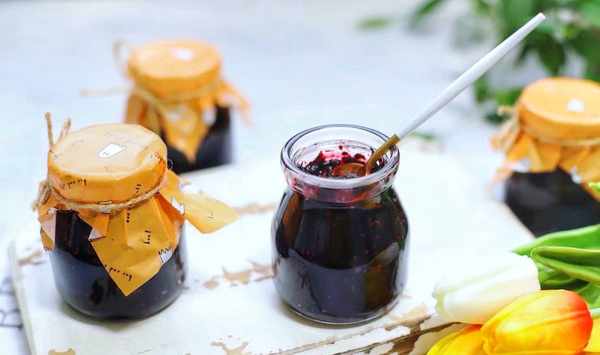 8,將熬好的桑葚醬裝入用開水燙過的玻璃瓶裡,把瓶子倒扣著放涼,然後放入冰箱保存,吃的時候用幹凈的勺子舀出來即可。