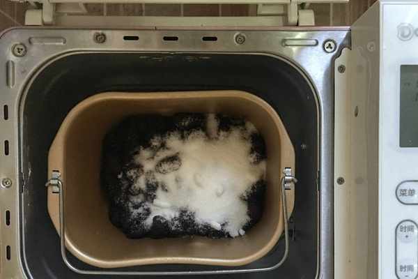 4,在面包機裡加入適量的白砂糖,桑葚和白砂糖的比例為2:1。