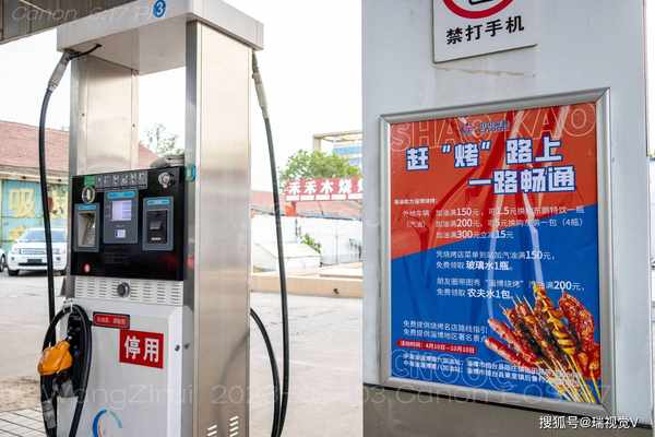 導航結束,是在路邊的一個加油站前面,加油站有“趕‘烤’路上,一路暢通”的宣傳語,使人覺得離“淄博燒烤”已經很近瞭。(王子瑞攝)