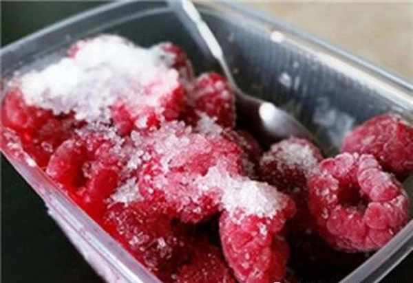 2、洗好的刺葫蘆放入大碗中,放上2大勺糖攪拌均勻,然後封上保鮮膜,放冰箱冷藏半個小時,叫它充分地吸收和溶解,析出果漿,半個小時後就可以食用,這時酸甜可口,口感也特別好。