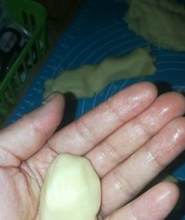 7.取一元硬幣大小為一個面團,用手輕輕握成小面團,切記是輕輕用力,擠壓貨火,也會影響成品的酥脆程度。