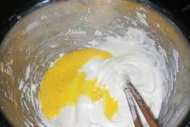 4.加入面粉,蘇打粉和泡打粉。在加入前,面粉和蘇打粉及泡打粉最好混合均勻。