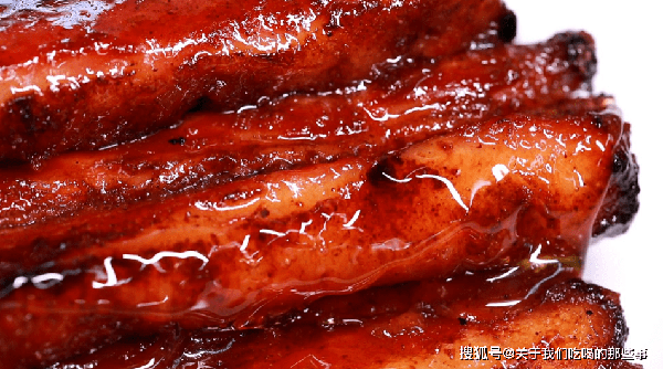 蜜汁叉燒是廣東省傳統名菜之一,也是與之比鄰的香港的十大經典名菜之一,“叉燒”是從“插燒”發展而來的,原料是瘦豬肉,叉燒醬、蠔油、蜂蜜等多種調料制作而成。