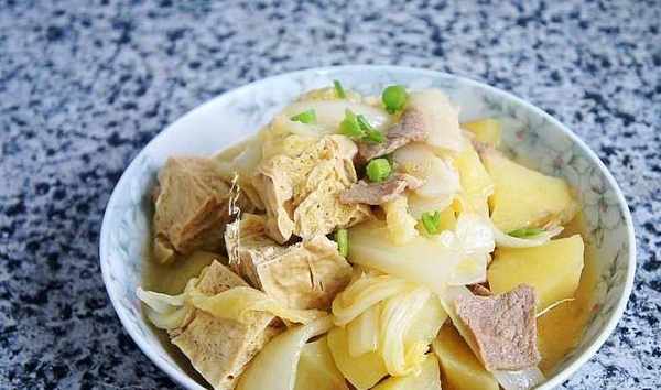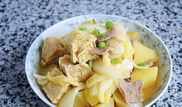 這是一道非常美味的傢常菜,土豆香滑,白菜脆爽,凍豆腐吸足瞭豬肉的湯汁,香而不膩,勁道有嚼頭,越嚼越香,東北人就愛這一口,我傢隔三差五來一頓還是吃不夠,老人孩子都愛吃,每次燉一鍋都吃的精光,湯汁都不剩。常吃這菜有利於脂肪的排泄,從而使體內積蓄的脂肪不斷減少,達到減肥瘦身的目的。
