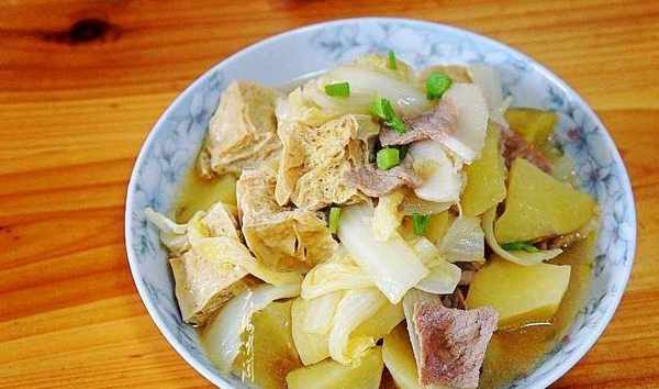 2、土豆燉熟即可,白菜不要燉過瞭,否則就不好吃瞭。