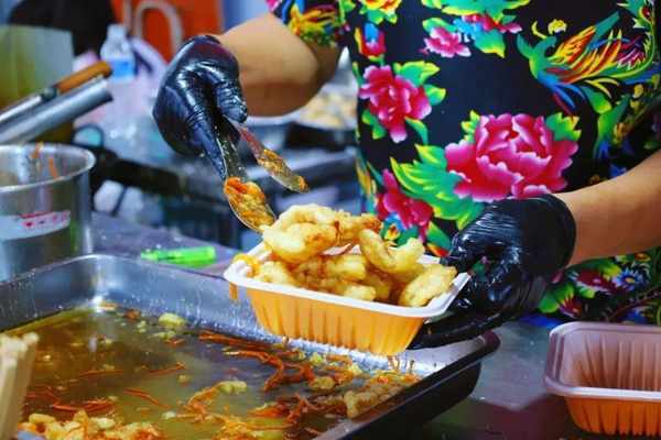 夜市還設置瞭專門的用餐區,於人群中並肩坐下,舉起飲料來個痛快碰杯。