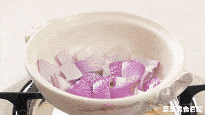 10.砂鍋燒熱倒入少許食用油,依次放入洋葱、金針菇、雞蛋豆腐,最後澆入牛腩和湯汁,蓋蓋煮到咕嘟咕嘟就可以開吃了。