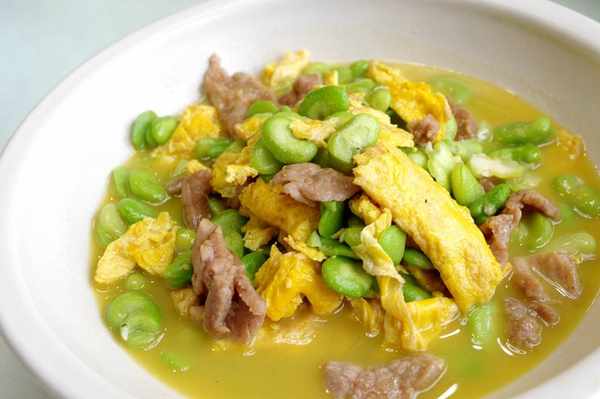 蠶豆正當季,搭配肉片和雞蛋,意外的好好吃