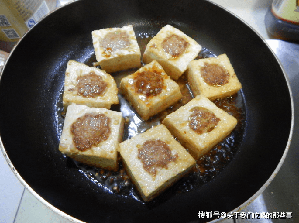 1、豆腐洗幹凈,切成小塊備用。肉末加入蔥末、洋蔥末、蝦皮、食鹽、生抽、蠔油、胡椒粉、淀粉、食用油,攪拌至上勁。豆腐用勺子挖個小洞,放入一些肉餡,壓緊實。
