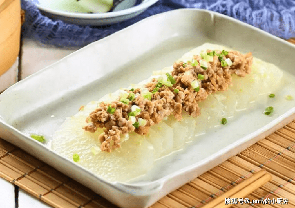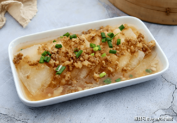 等冬瓜完全蒸熟瞭,撒些新鮮蔥花點綴,就可以食用瞭。