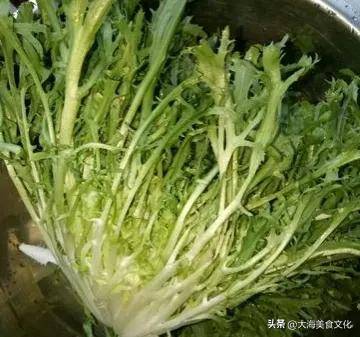 步驟一:苦菜洗凈之後,剪掉根部,然後鍋中燒開水,下入苦菜,焯一下撈出備用。
