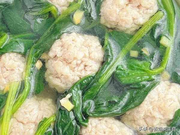 3、起鍋燒油,油熱後放入薑末炒出香味,再加入足量的清水,開大火煮開,再放入肉丸子煮5分鐘。煮熟之後放入菠菜,再加入食鹽調味,就可以出鍋開吃瞭。