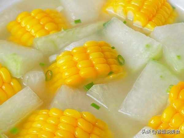 1、玉米剝掉外皮,清洗幹凈後剁成塊。冬瓜削掉外皮洗凈後切成小塊備用。
