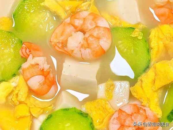 1、黃瓜削掉外皮,洗凈後切成片。鮮蝦去頭去殼去蝦線,清洗幹凈瀝幹水分。雞蛋打入碗中攪散,嫩豆腐切成小塊。