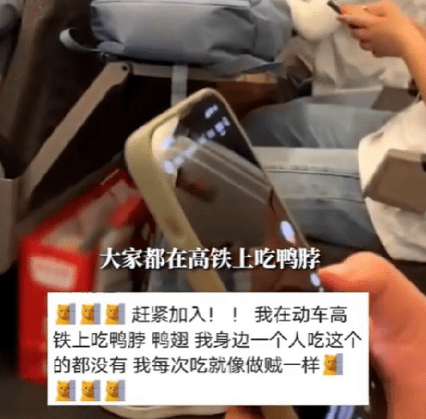 有網友稱,如果滿車的人都在啃鴨脖子,那基本上都是回程的遊客。不過鴨脖子也確實是休閑食品,適合在旅途中享受。以前去北京出差,幾個同事買很多鴨脖鴨架啤酒,晚上九點的臥鋪,吃到十一點睡覺,第二早上七點到北京,快活啊!