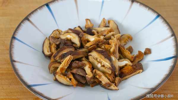 3、香菇泡好後撈出來擠幹水分,香菇水不要倒掉,留著等下用。接著再把香菇切條備用就可以。