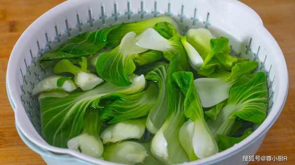 5、上海青3朵,掰開後清洗幹凈,還可以加點鹽浸泡10分鐘,然後瀝幹水分備用。