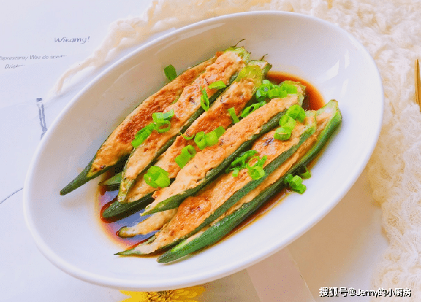 秋葵刷洗幹凈,去掉根部,再對半切開,將秋葵裡的籽去掉,怕浪費可以放進肉餡中。