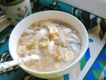 百合50克、杏仁10克、白米50克,先煮米數沸,入百合、杏仁,煮熟後加糖服,每日1次。