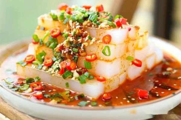 食材:豌豆淀粉、純凈水、大蒜、蔥花、小米辣、香醋、白糖、雞粉、生抽、醬油、香油、紅油、花生碎