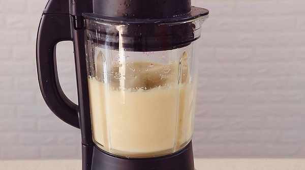 4、 接下來將煮好的綠豆放在機器中,打成綠豆沙;