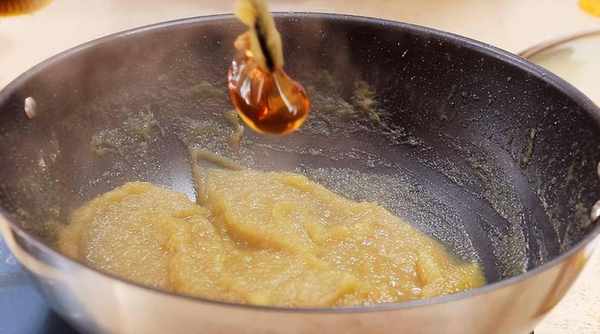 4、 再次熬到濃稠,可以用筷子沾一點放在水裡,不會融化就可以出鍋瞭;