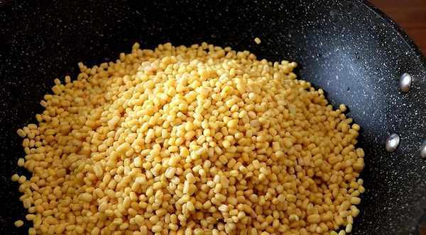 1、 將綠豆清洗幹凈,然後在水裡面浸泡變軟,將表面的綠色的皮攆去;