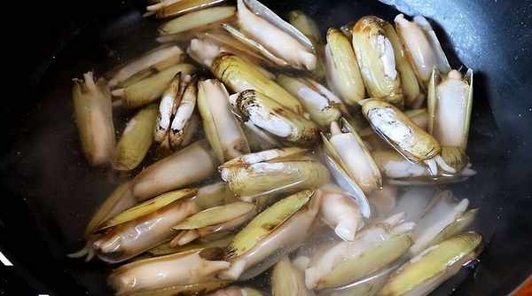 3、蟶子煮到半熟,能剝肉就可以,將肉質全部取出;