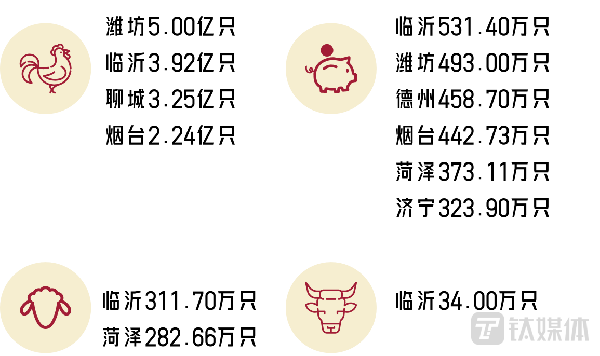 圖:2021年山東畜禽出欄量較高城市 數據來源:各市2021年統計年鑒 制圖:鈦媒體平臺運營部