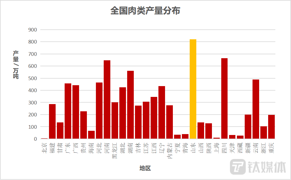 圖:2021年全國肉類產量分佈 數據來源:Wind數據 制圖:鈦媒體平臺運營部