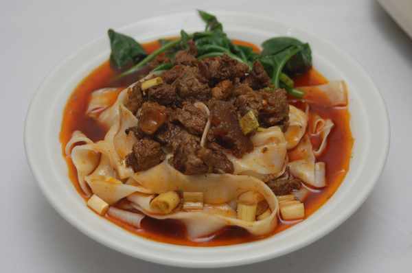把混合著各種作料的湯澆在面上,這時候是紅黃白綠一大碗,不吃,光是看著,就是一道視覺的美味,隨著洋溢酸氣的升騰,能調動得你垂涎欲滴,食欲旺盛,連吃幾大碗才過癮,才解讒。