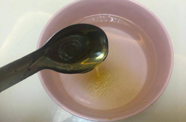 2.準備一碗白開水,加入兩勺蜂蜜,然後用勺子順時針攪勻,使蜂蜜溶解到水中。