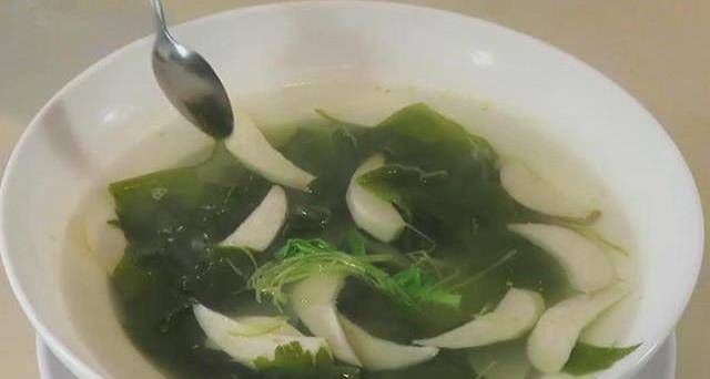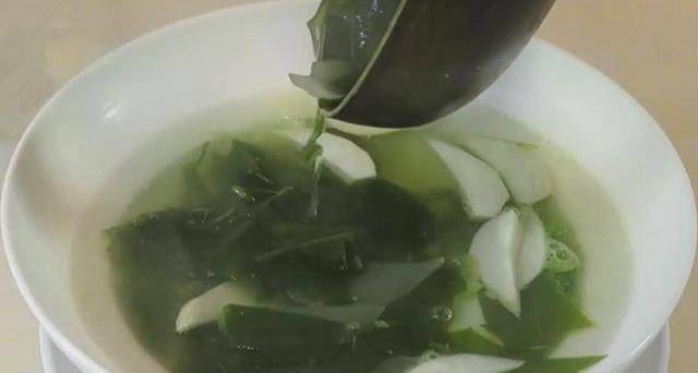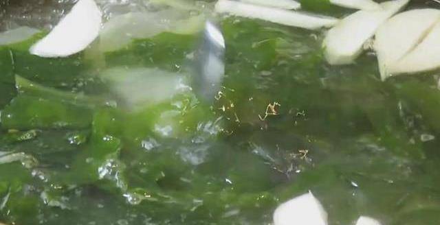 7.水開以後我們再放入裙帶菜,裙帶菜比較容易熟,所以不用煮的時間太長,不然它會爛掉。