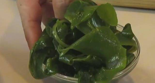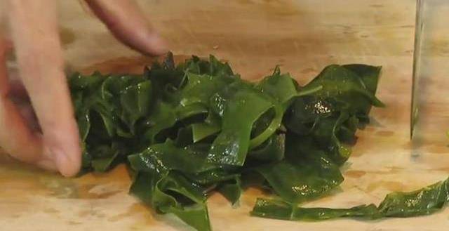 5.最後把裙帶菜用刀也稍微切一下,這道菜的材料就準備好瞭。