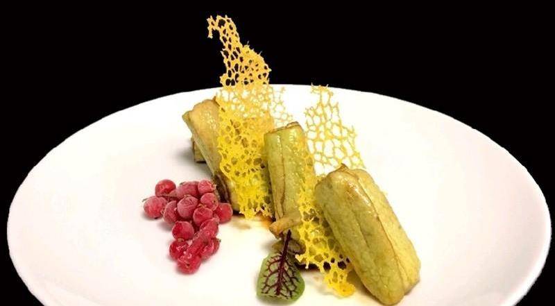 玉女瓜放入醬汁中浸泡3個小時撈出瀝幹水分,用保鮮膜卷成圓柱形冷藏定型後去掉保鮮膜如圖擺盤即可。