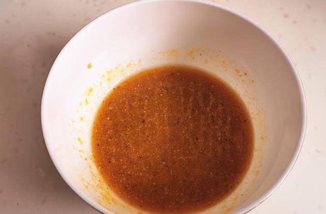 第三步,再來調制椒香餡料,把花椒面和玉米面倒入碗中,加入2克鹽,再倒入花生油20克,用筷子攪勻,成稀些的餡料;