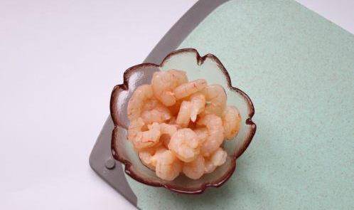 先醃制蝦:蒜瓣、蔥白放入,加1g鹽醃制5-8分鐘即可