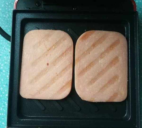 第4步、火腿片兩片微煎。取出備用。