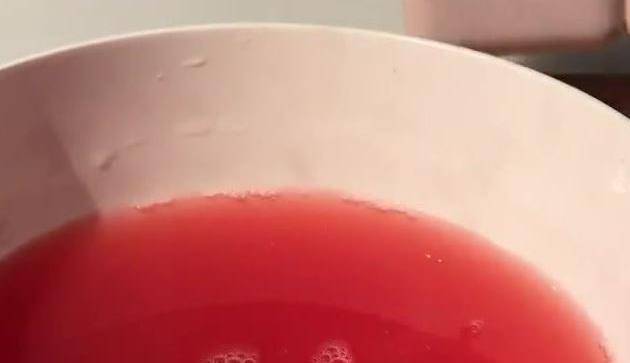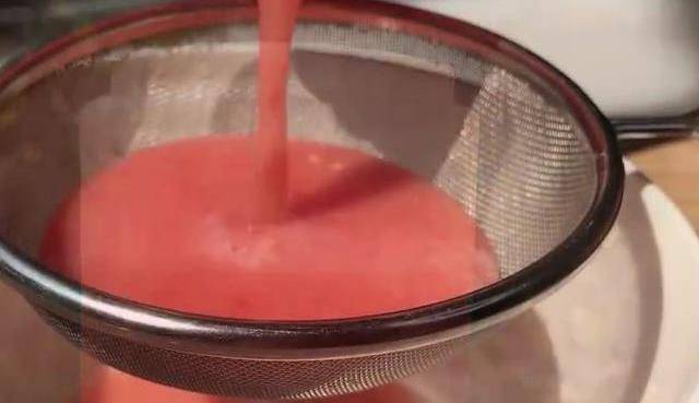 西紅柿不用去皮,直接用刀切碎,然後再放入榨汁杯中,加適量清水,再加一點西紅柿汁,炸完的汁一定要多過濾兩遍,目的是為瞭過濾掉西紅柿多餘的殘渣,讓最後做出來的口感更加的犀利q彈。