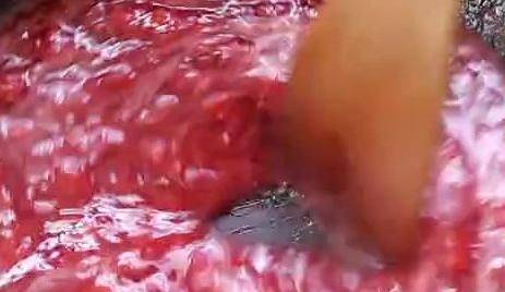 擠不動的就用圓勺子在你夢裡面轉圈就可以出汁瞭,大概25克就夠瞭。把字挑出來,放一旁備用,把醃制好的草莓到鍋裡開大火燒開,微微沸騰時轉小火,
