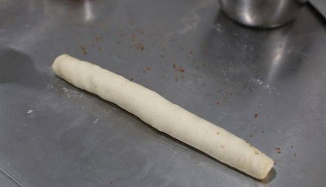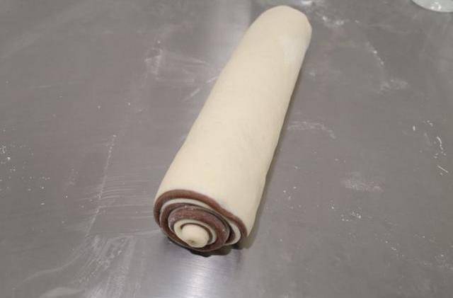 15、卷起,放入發酵箱28度,75濕度,發酵90分鐘。