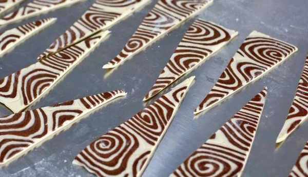 12、然後緊密的鋪在步驟6制成的白色面團上。包上塑料袋,冷凍松弛20分鐘。