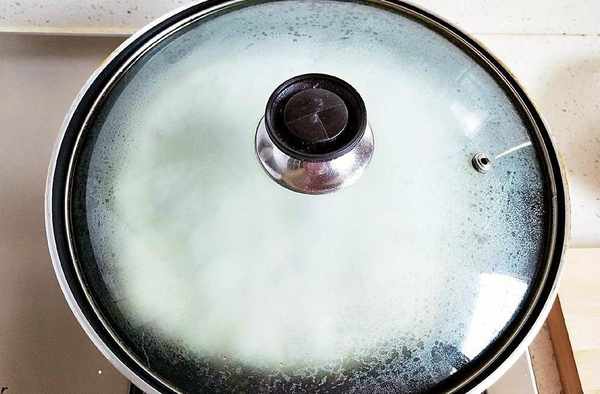 8、蓋上鍋蓋,小火烙至3分鐘(蓋鍋蓋的目的是,讓肉餡在蒸制的過程中快速成熟)