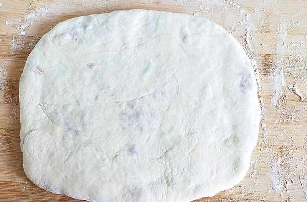 5、疊成大餅,註意四周不要露餡,露餡的部分可以用手捏和