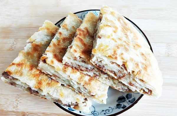 調肉餡的時候,不要加水,因為肉餡的水分會被面餅吸收,烙出後會發黏。不加水烙至出的肉餅才是幹香的;