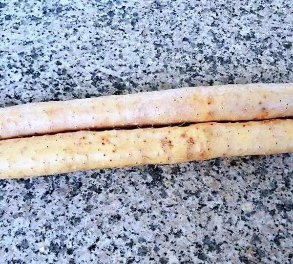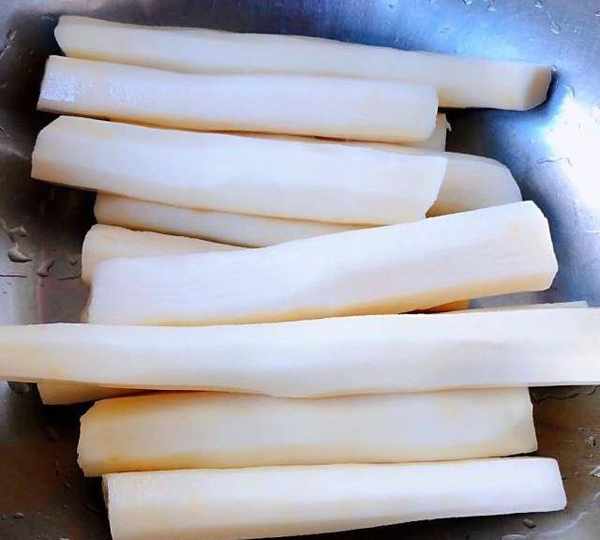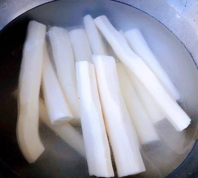 第2步、山藥去皮洗凈在清水中浸泡防止氧化變黑。