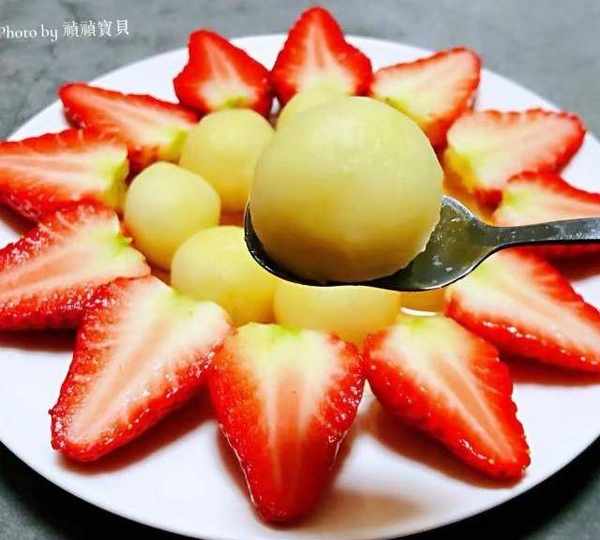 第11步、草莓一切為二擺在山藥球的外側瞬間顏值爆表。
