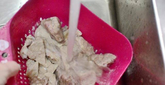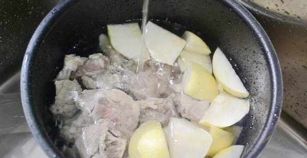 2.將煮沸切大塊,然後冷水下鍋,燒開後繼續煮幾分鐘,撈出用涼水再次沖洗幹凈