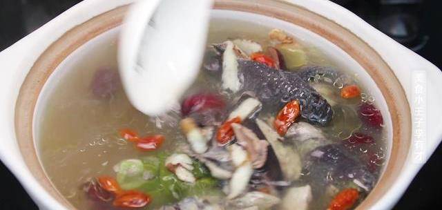 鹽加適量清水。大火煮開後下入半隻烏雞,加入舂節和薑片,大火燒開後轉小火慢煮,一個小時後加入泡好的枸杞!和適量的!調味料!兩分鐘後即可關火盛出。一碗滋陰補血的烏雞湯就做好瞭。清淡滋補,不腥不油膩!
