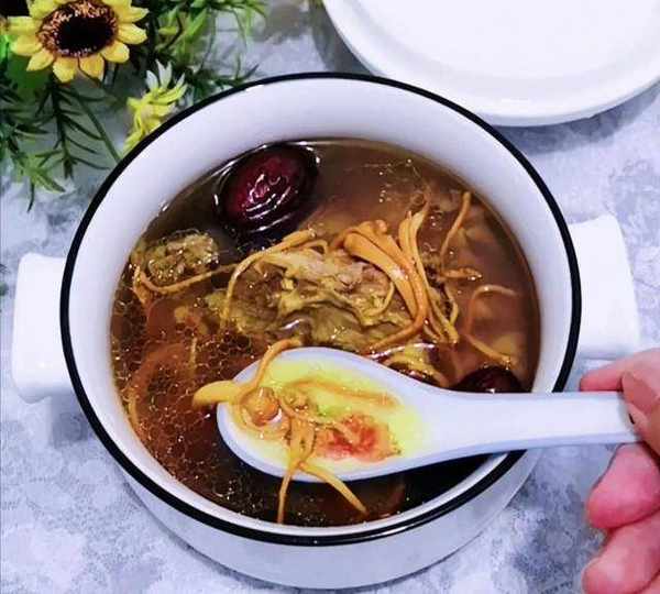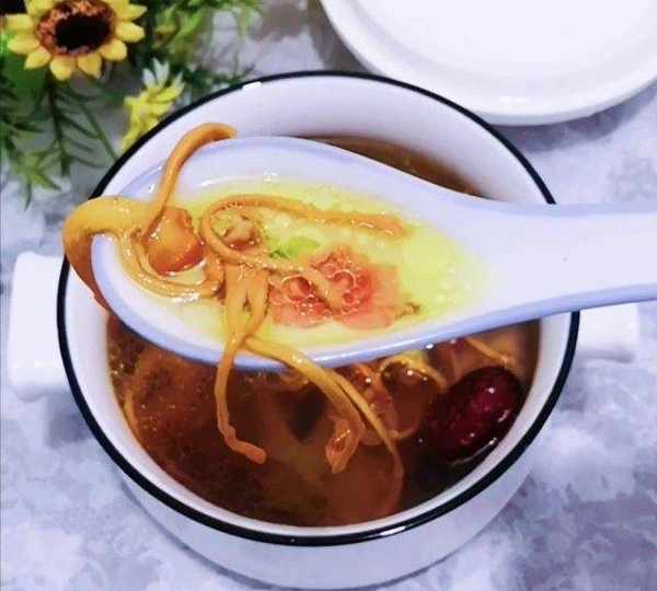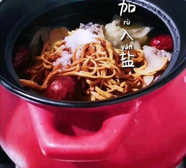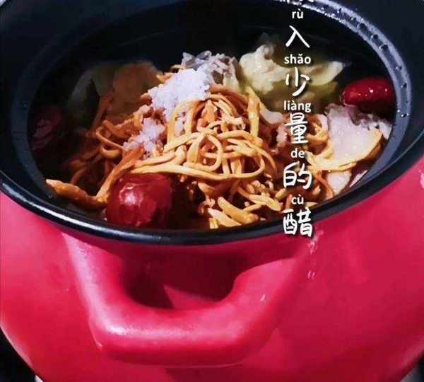 第14步、時間到,放入蟲草花和紅棗。